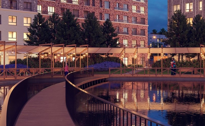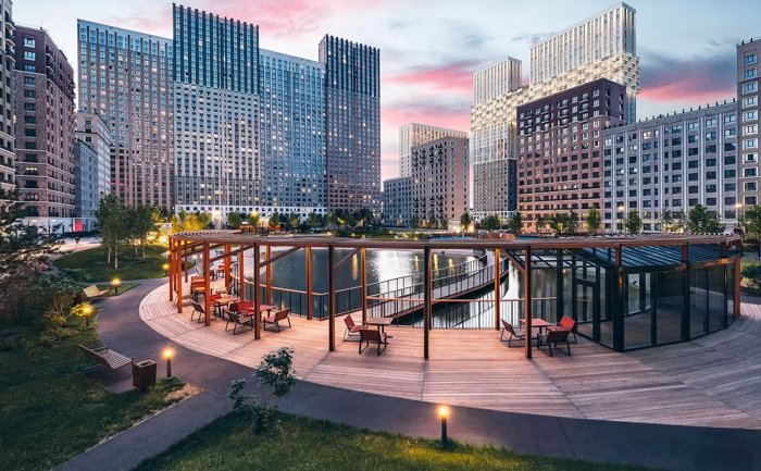 Для жителей комплекса предусмотрены 2 частных детских сада, школа, студия йоги, фитнес-центр, кафе и магазины. Обустроены коворкинг, зоны отдыха у пруда, кладовые и помещения для хранения колясок. Территория закрыта от посторонних, оснащена круглосуточным видеонаблюдением и системой контроля доступа. Владельцам авто доступен подземный паркинг на 1713 мест
