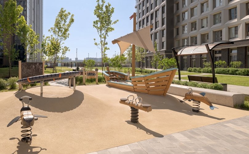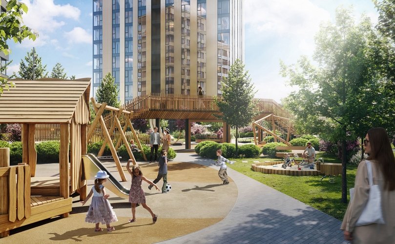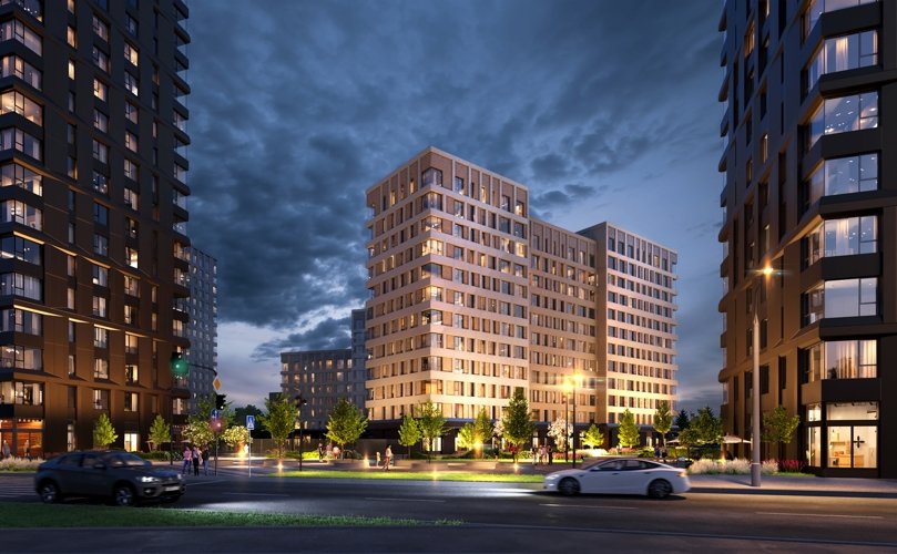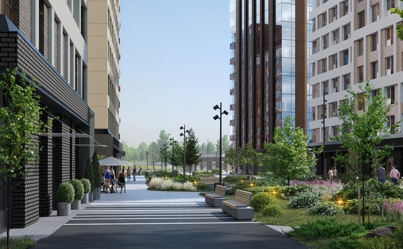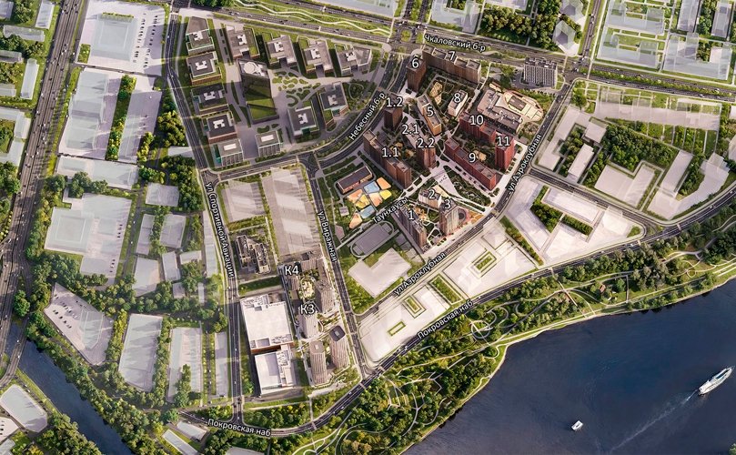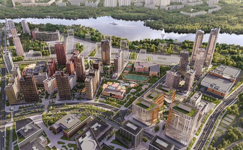 Он включает в себя несколько жилых кварталов, которые занимают 600 000 кв.м. Высота домов варьируется от 11 до 27 этажей.